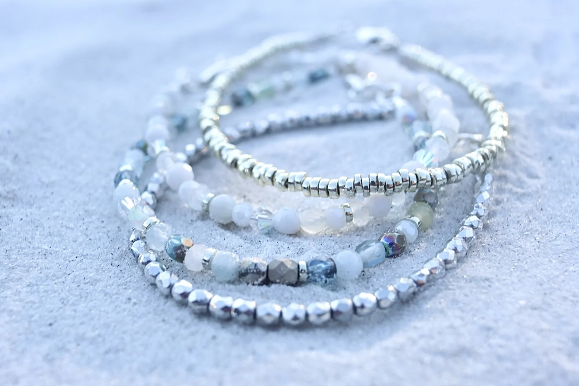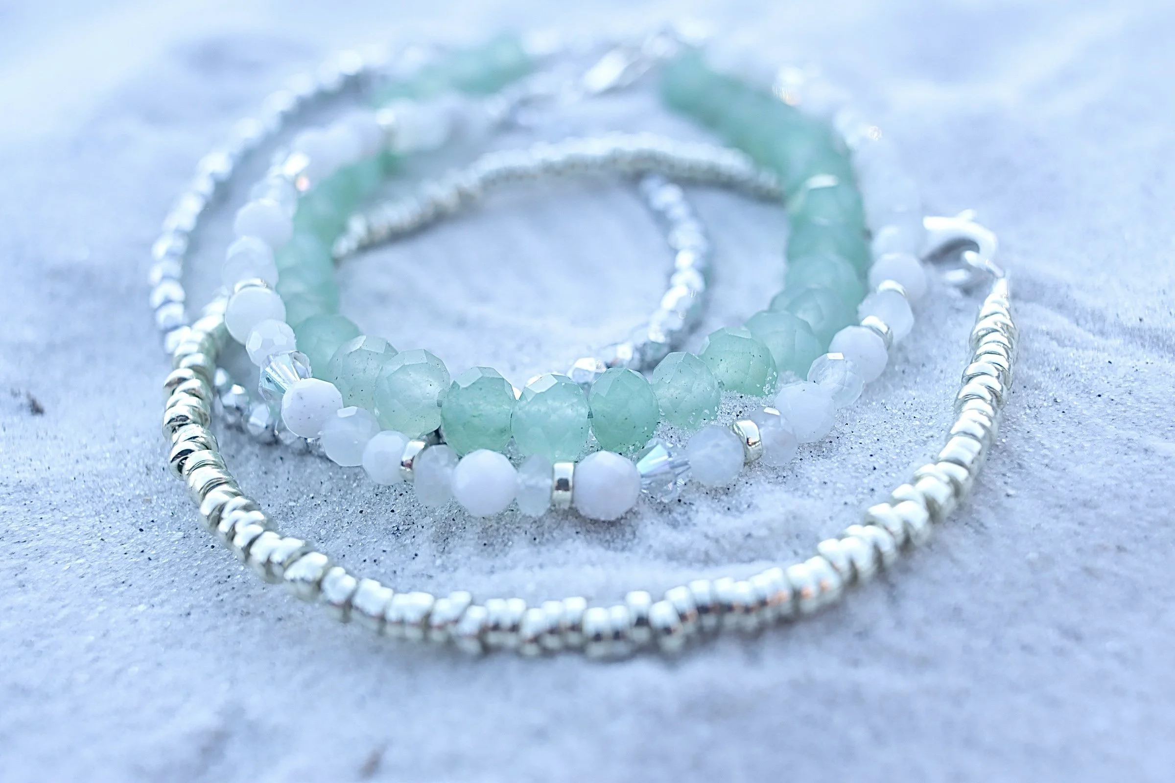 The Lunar Tides Collection is a celebration of women, centered around moonstone, a gemstone long associated with intuition, femininity, and motherhood. Designed with genuine gemstones, crystals, and Czech glass inspired by the shimmer of coastal light and the movement of the tides, each piece honors the strength, love, and new beginnings carried through every season of life.